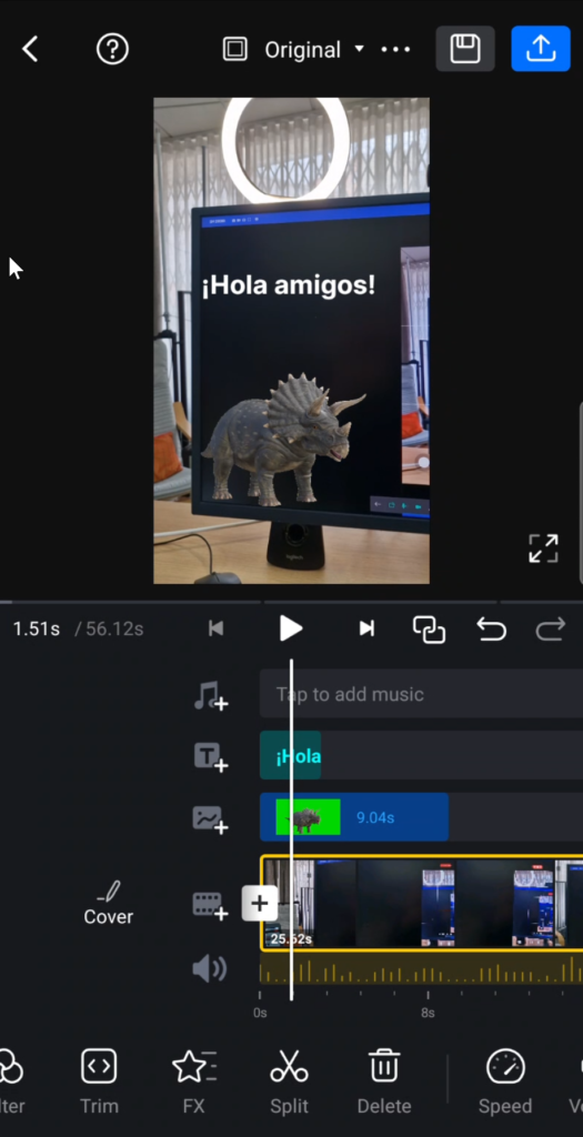 VN facilita la incorporación de texto con opciones avanzadas de animación, efectos de entrada y salida personalizados y estilos como neón o sombreado. También cuenta con una herramienta de subtítulos personalizados, con la posibilidad de importar archivos en formato .SRT de manera gratuita.
